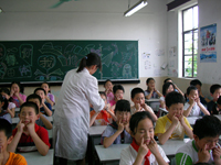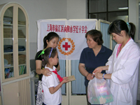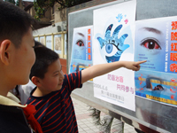 六月六日爱眼日,红十字进行卫生护眼宣传。