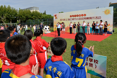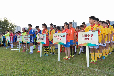 | 由团市委少工委、上海市教委、上海体育局主办,徐汇区向阳小学协办的“我与运动交朋友”2015年上海市红领巾小足球竞赛展示活动于9月19日周六在上海体育学院隆重举行,莅临本次活动的领导和嘉宾有团市委副书记刘刚、团市委党组成员、上海市总辅导员赵国强、市教委体卫艺科处处长丁力、市体育局副局长郭蓓、市少先队工作学会副会长、徐汇区向阳小学特级校长特级教师洪雨露等,同时前来的还有中国国家队老队员、著名足球运动员成耀东、贾春华、秦强、朱琪,他们也是协办单位徐汇区向阳小学的家长。 本次活动全市各个区县派出了20所小学代表队,这些学校都是在今年8月被评为全国足球特色学校,可谓是上海校园足球强手中的强手。经过简短而精彩的开幕仪式后,向阳小学的啦啦操点燃了全场参赛队员的热情,一曲朗朗上口的“神曲”《小苹果》配以简单易学的动作,让在场的所有人不禁跃跃欲试。在啦啦操之后,由向阳小学教师组成的向阳教工足球队带来了足球技能展示,带球绕桩、停球射门,这些平日里站在三尺讲台上教书育人的“白面书生”到了绿茵场上摇身一变成了生龙活虎,尤其是教工队助力前锋洪雨露校长的一记底线处15度角死角射门洞穿守门员的十指关引得全场一片叫好,就连路过的体育学院学生也为这为耳顺之年的长者的精湛技艺所折服。而团市委副书记刘刚也亲自上阵与上海市红领巾理事会的队员们开展了一场友谊赛,充分体现了共青团员是少先队员亲密的大朋友和指导者这一理念。 因为前来参赛的都是各区选一的强队,之后正式比赛的精彩程度可想而知,小球员们赛出了风格与水平,获得了喜悦与欢乐。四强之战在20日上演,采用的是交叉循环制,最终向阳小学获得了季军的好成绩,而绿荫场上没有输家,每支队伍、每个球员都用自己的汗水与毅力书写了精彩的时刻。值得一提的是本次比赛规定每支球队场上必须有一名女生参赛,在比赛中女生们巾帼不让须眉,成为赛场上一道靓丽风景。 | |